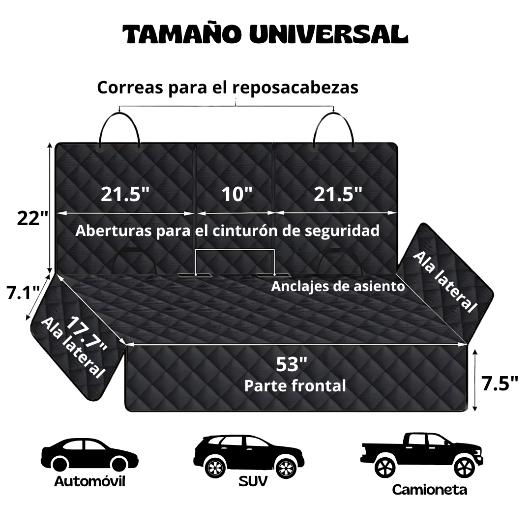 Olvídate de los pelos, rayones, manchas, lodo o accidentes. Mantén tu asiento trasero limpio y como nuevo, ya sea que viajes con mascotas, niños o ambos. Disfruta el camino sin estrés ni preocupaciones.